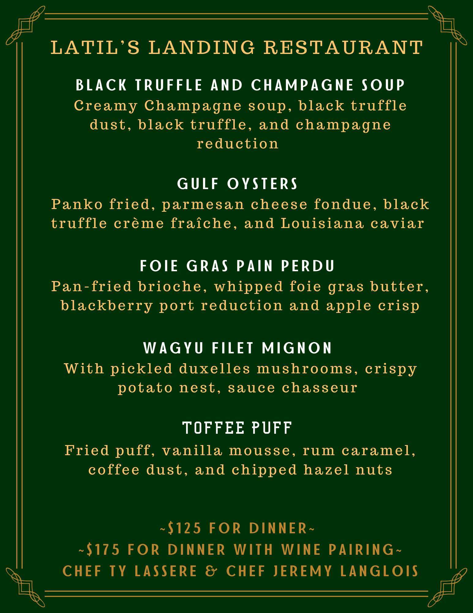 Chefs Jeremy Langlois and Ty Lassere look forward to welcoming you!
